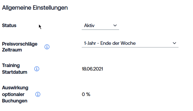 Normally, the price suggestions are always generated by the algorithm for a reference rate and then adjusted to the remaining rates. The intervals between rates are set during onboarding according to your price list. Optionally, several revenue rates can also be defined, for example, to map other tariffs from a certain length of stay of the customer (e.g. short stay, mid stay, long stay).