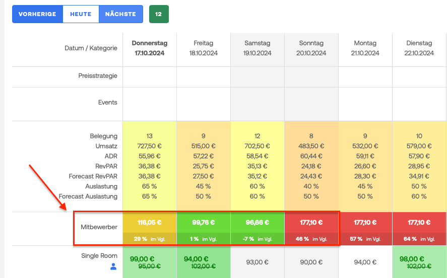 The prices in the competitor line can sometimes be higher or lower than the actual sales price on the website or on booking.com.