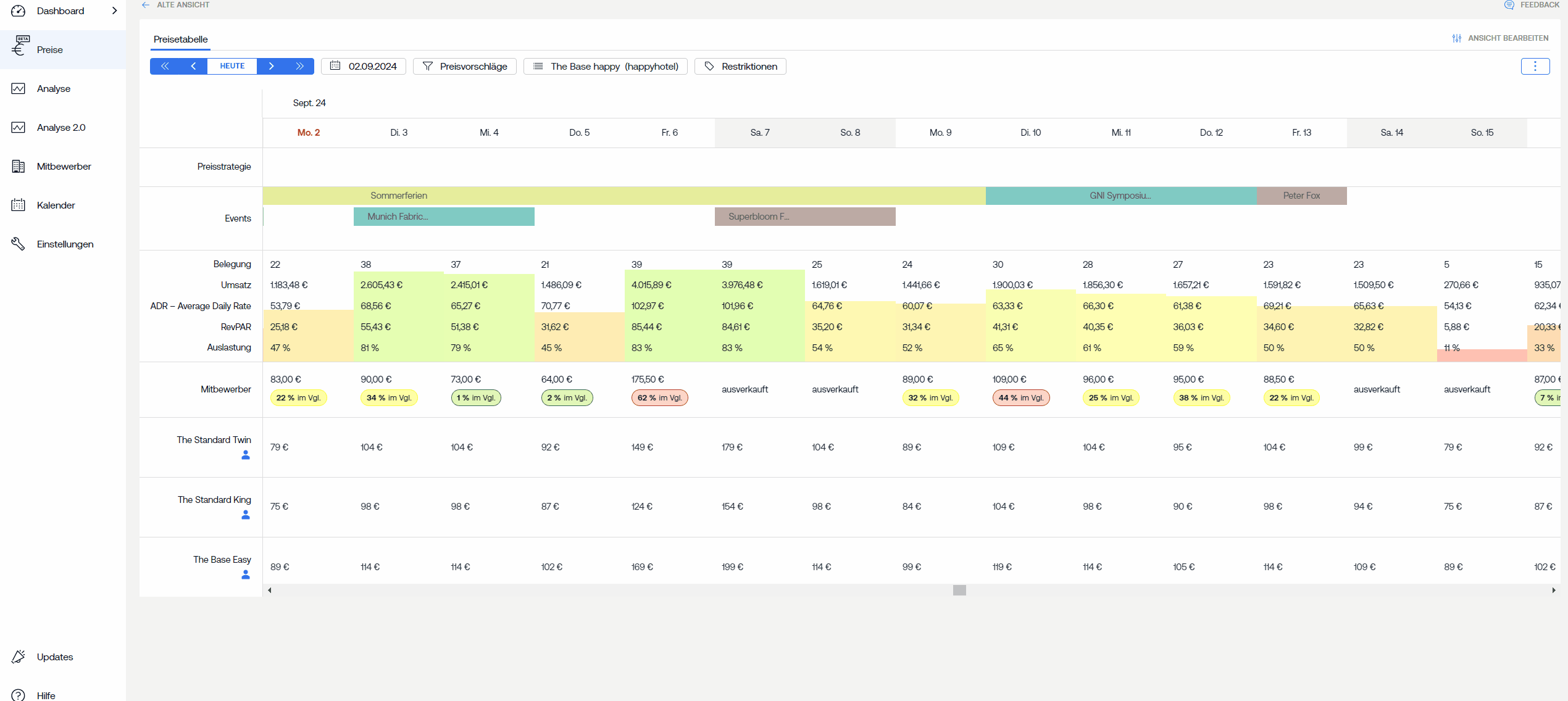 Drag the most important KPIs into the price calendar and get the best price for the day!