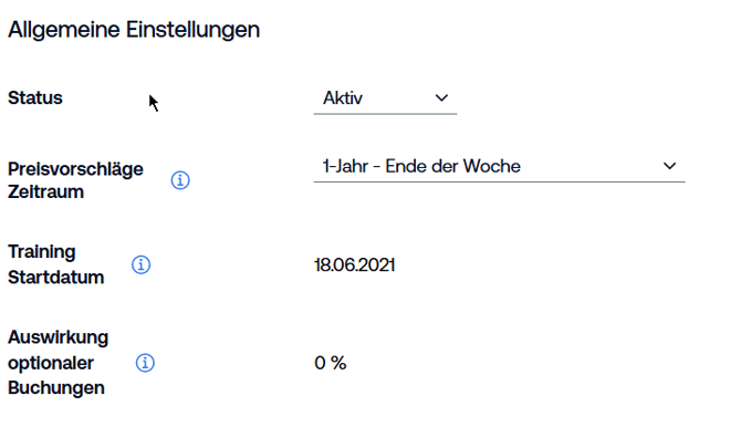 Aktiv: Der Algorithmus ist aktiv und generiert Preisvorschläge. Diese Vorschläge können vom Autopiloten auch angenommen werden.
